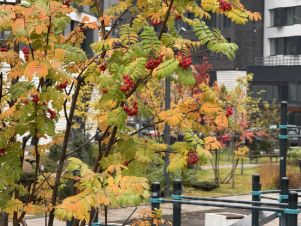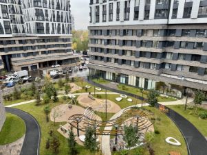 Приятное окружение, благоустроенные дворы без машин, кафе, пекарни, магазины, зоны отдыха.