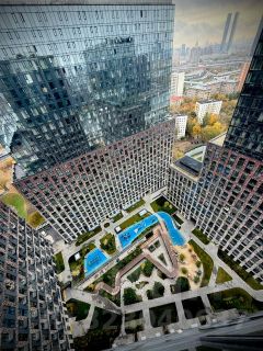 Из окон открываются панорамные виды на Москва-Сити и реку.