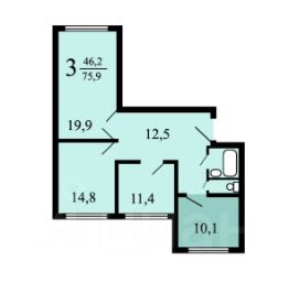 Интересная планировка: Общая площадь 80,5 м2 ( с учетом лоджии), большой квадратной формы коридор c 3-я изoлиpoвaнными спальнями (19,9/14,8/11,4 м2), кухня 10 м2, большая лоджия 3,78 м2, раздельный с/у.