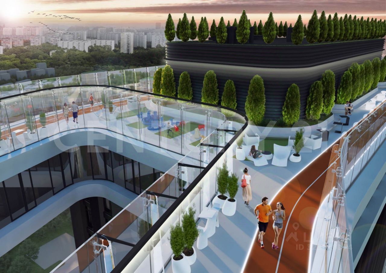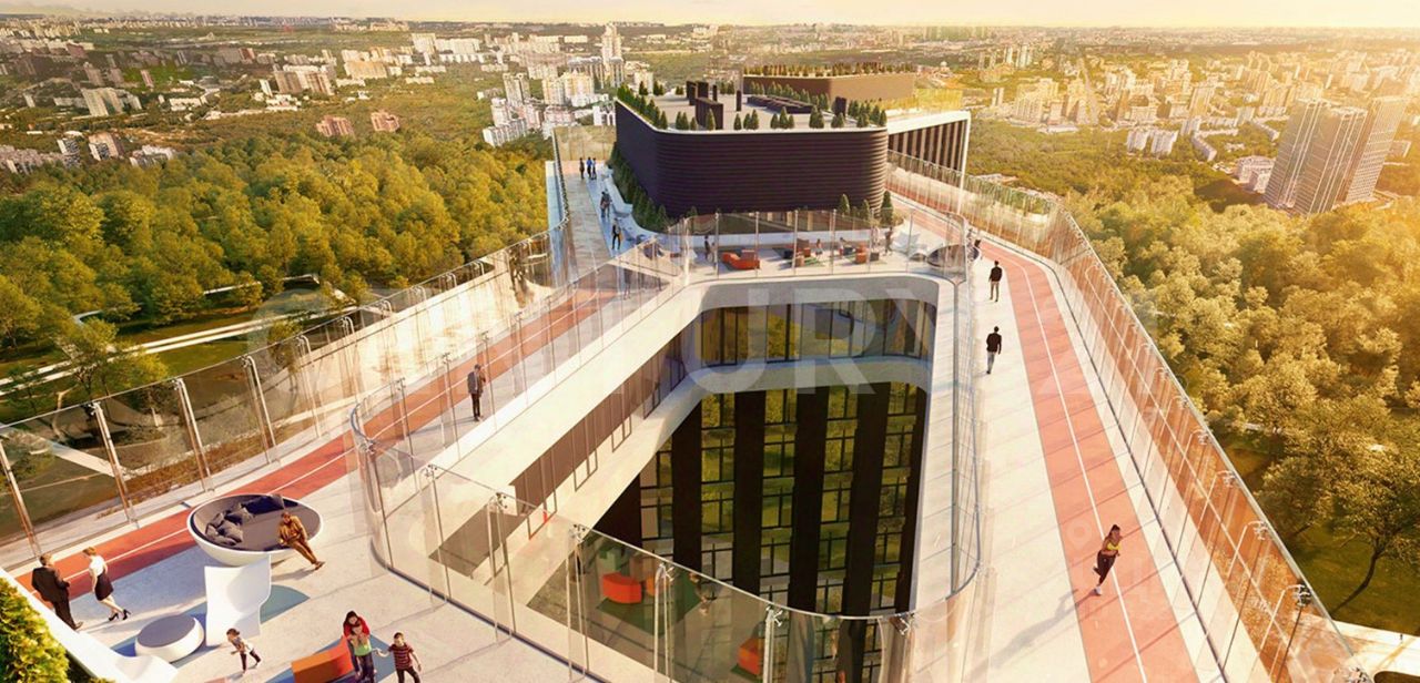 Событие - 4 инновационный дом с парящими мостами, коворкингом и парком на крыше, беговые дорожки с великолепными панорамными видами на Москву.