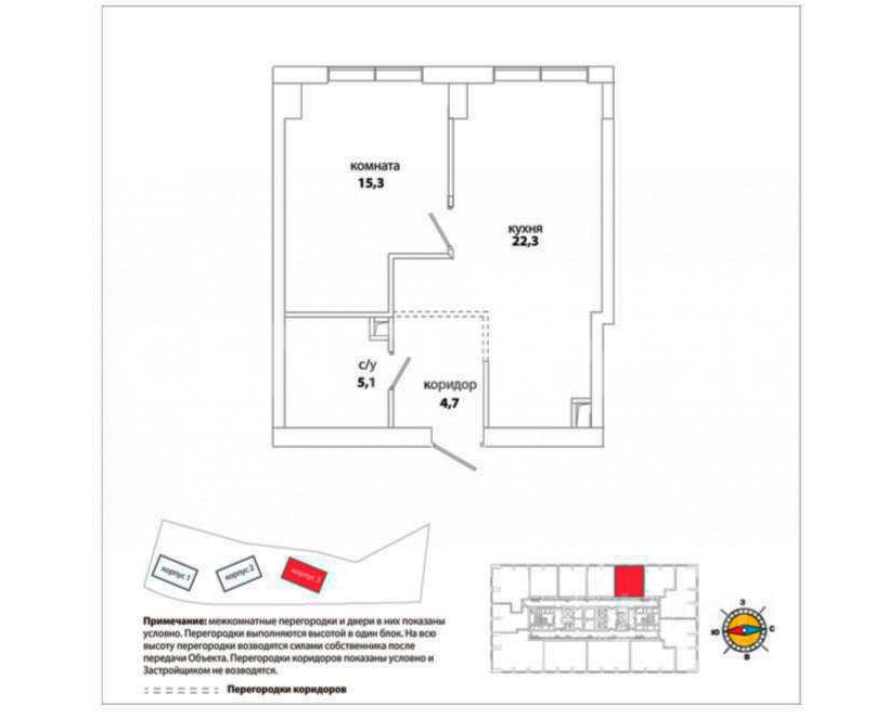 Квартира без отделки. Планировкой предусмотрено: кухня-гостиная, спальня, санузел, гардеробная.