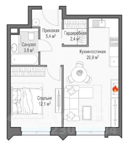 Светлую жилую зону площадью около 12, 1 м² — идеальную для отдыха