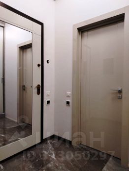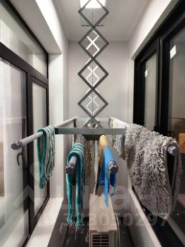Также, прихожая с зеркалом-шкафом, санузлы и застеклённая лоджия оснащены системой подогрева пола. Есть сушка-трансформер для белья, парогенератор и гладильная доска.