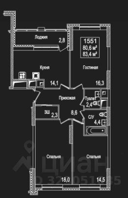 планировки общей площадью 83,4 м², расположенную на 10 этаже 22-этажного