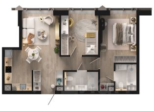 Евротрешка 61,18 с панорамными окнами на запад. Просторная кухня-гостиная 20,9. Две изолированные спальни, включая мастер-спальню (10,69 и 12,42). Два санузла.