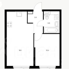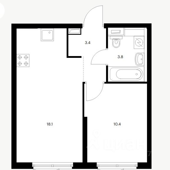 Продаётся 1-комнатная квартира с большой объединённой кухней-гостиной.