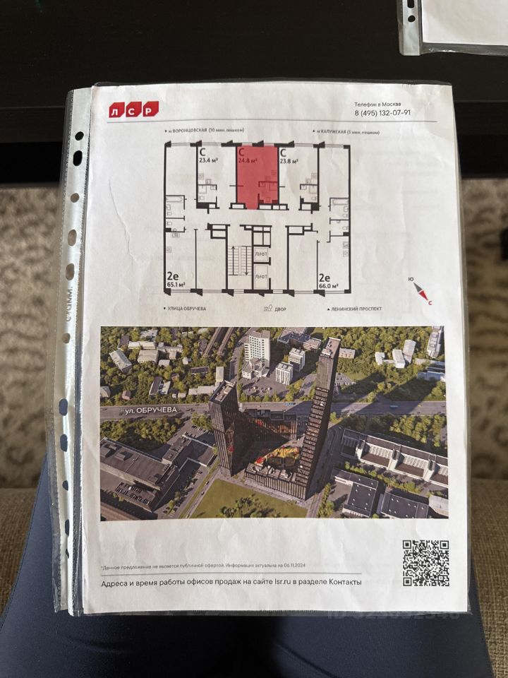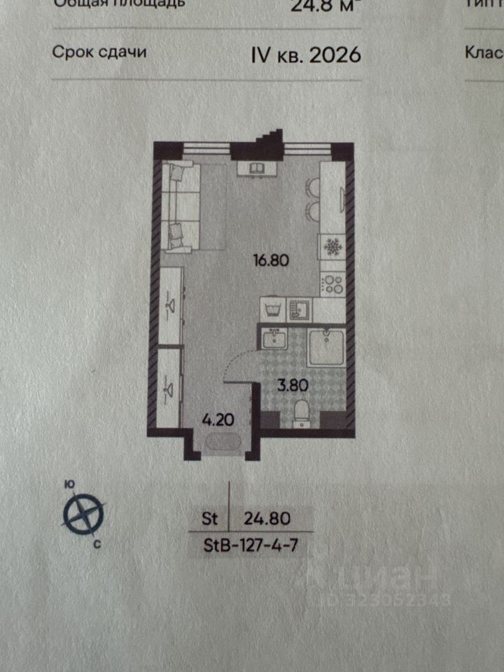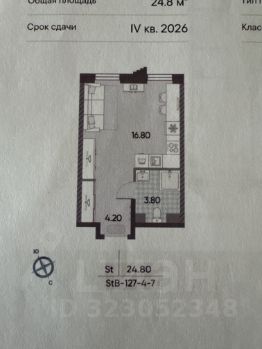 Продается квартира-студия общей площадью 24.8 кв. метров на 7 этаже дома бизнес-класса Обручева 30.