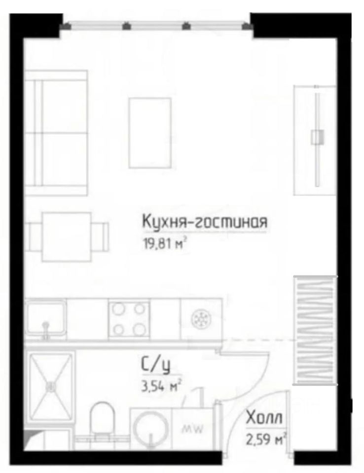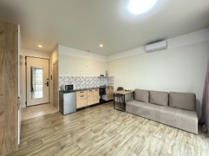 Студия готова к проживанию, сделан продуманный ремонт, укомплектована мебелью и техникой.