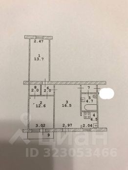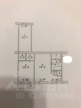 3-х комнатная квартира, с общей площадью 58.9 кв.м.