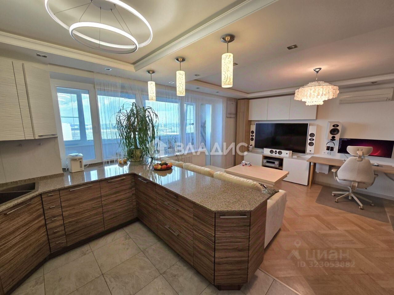 Квартира площадью 90 кв. м расположена на 18-м этаже 24-этажного панельного дома 1994 года постройки по адресу: улица Кировоградская, 8 корпус 4. Высота потолков 2,5 метра создаёт ощущение простора и свободы. Две лоджии предоставляют отличные возможности для отдыха и наслаждения видами на улицу.