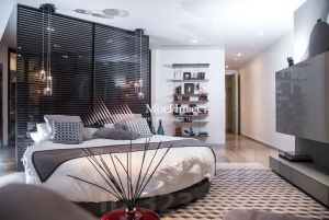 Комфортная планировка с необычной конфигурацией окон: Просторная гостиная совмещенная с зоной кухни и обеденной зоной, три изолированных мастер спальни со своими ванными комнатами и просторными гардеробными, кабинетами, просторный холл, гостевой сан/узел, прачечная, кладовая.