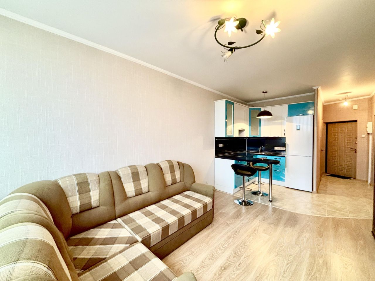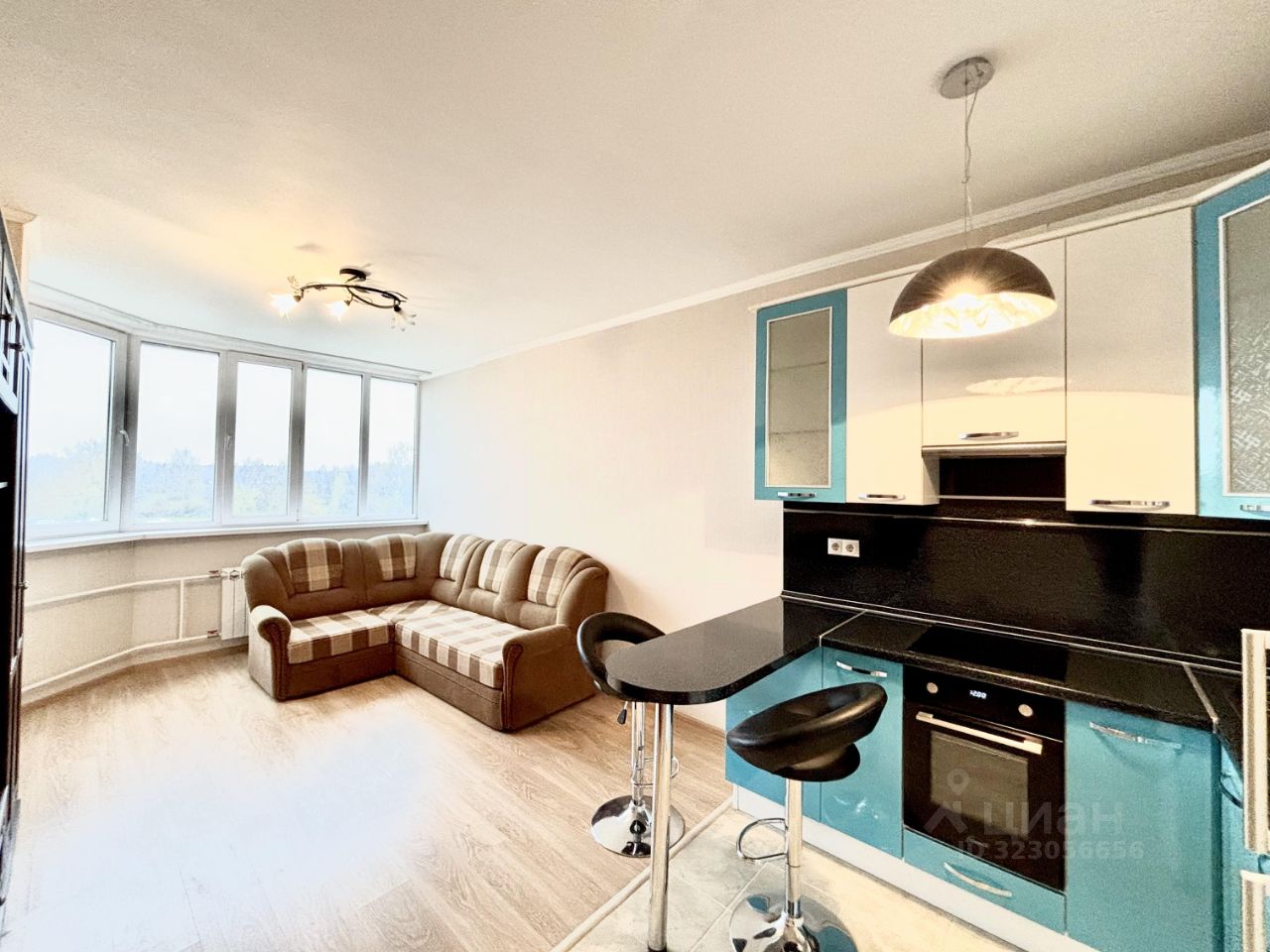 большая светлая комната с кухней.