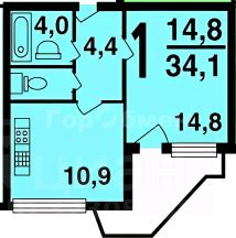 Удобная планировка включает в себя кухню 10,9 м2, просторную спальню 14,8 м2 с выходом на балкон, раздельный с/у и прихожую.
