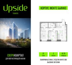 Продаётся 2-комнатная квартира площадью 61.76 кв.м на 37 этаже 46 этажного корпуса Монте Бьянко в квартале небоскребов "Upside Towers". В квартире отделка White-box, c видом на Внутренний двор, корпус Эверест , корпус Атлас, Ландшафтный парк, Центр, Москва-Сити. Номер квартиры Г3709.