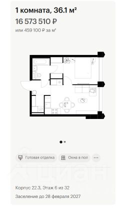 На 2 миллиона ниже цены застройщика. Быстрый выход на сделку.