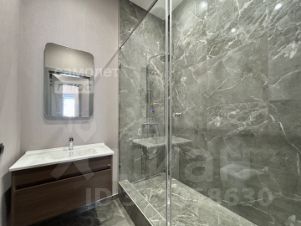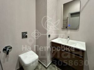 На полу в комнатах постелена инженерная доска, в санузлах керамогранитная плитка с подогревом.