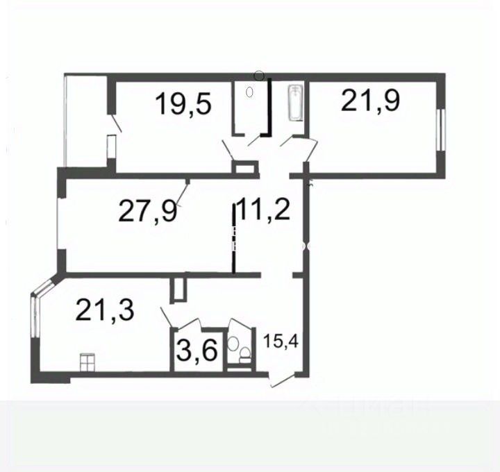 первая - площадью 27,9 м², вторая - 19,5 м² с выходом на лоджию площадью - 5,2 м², третья - 21,9 м²