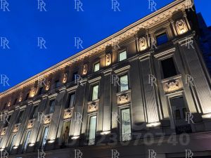 8-этажное здание имеет два фасада, неоклассический с элементами театрального декора из знаменитой постановки "Принцесса Турандот", и новый фасад, окна квартир которого, смотрят во внутренний двор. Внутренняя инфраструктура комплекса включает в себя уникальный атриум, который оформлен в минималистичном восточном стиле с применением природного камня и цветущей сакуры. Предусмотрен камерный внутренний двор с уникальным ландшафтом, газонами для занятий йогой и зонами отдыха.