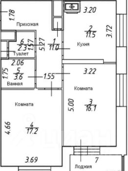-две изолированные комнаты по 16,1 кв.м и 17.2 кв.м.;