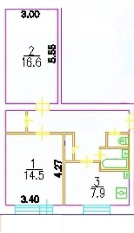 2 изолированные комнаты 16.5м2+ 15.4м2;