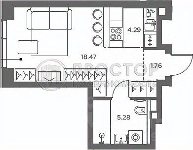 oЖилая площадь: 18,5 м²