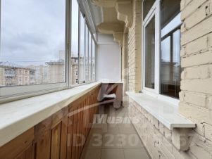 Три изолированные комнаты. Полностью меблирована, мебель и технику могут оставить по желанию покупателя. Высота потолка 3,2 метра. Окна ПВХ. Полы - паркет и плитка, в прихожей частично ламинат. Санузел раздельный. Кухня и гостиная выходят во двор, спальня и кабинет с видом на парк. В большой спальне незастекленный балкон. Встроенный кухонный гарнитур с необходимой бытовой техникой. В гостиной большой застекленный балкон с видом на шпиль Парка Победы. Есть гардеробная комната.