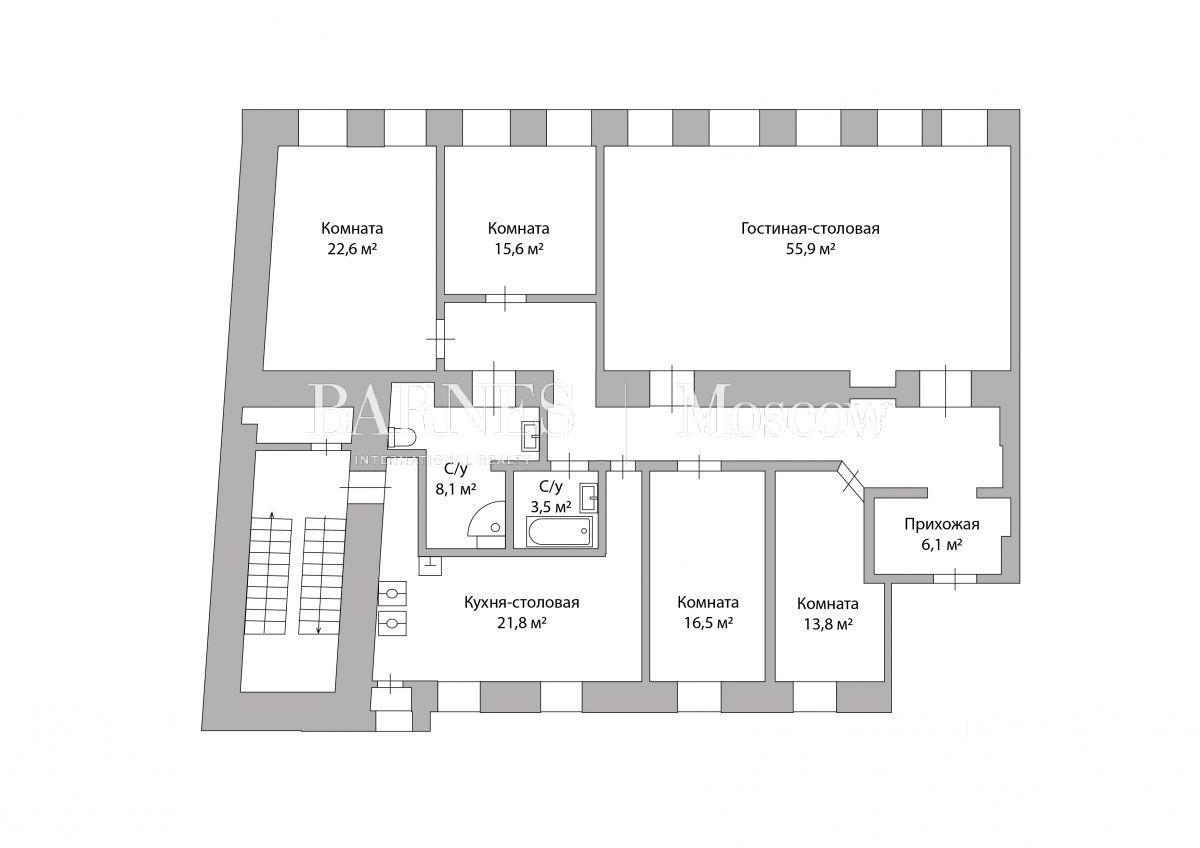 Атмосферная и просторная квартира площадью 189 кв.м. на 3 этаже малоквартирного кирпичного дома с лифтом, расположенного в 5 минутах пешком от сада им. Баумана.