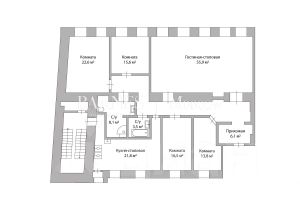 Планировочным решением предусмотрены: просторная гостиная-столовая с 5 окнами, кухня-столовая, 5 изолированных комнат, 2 совмещенных санузла, большая прихожая с вместительными встроенными шкафами, кладовые помещения.