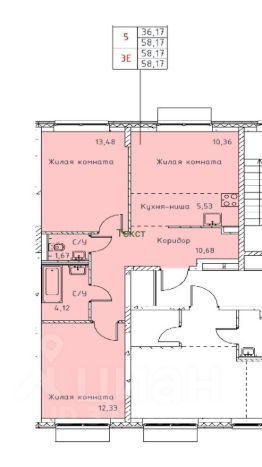 - две изолированные комнаты 13,48 кв. м. и 12,33 кв. м.;