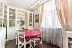 Замечательно продуманная планировка, которая предусматривает: уютную просторную гостиную, кухню со встроенной мебелью и необходимой техникой, три спальни, большую ванную комнату и гостевой санузел, застекленный балкон, гардеробные. Выполнен искусный ремонт, использованы качественные и некричащие детали интерьера, красивый текстиль, пастельные цвета. Зелень в окнах, черты стиля Прованс, множество окон и воздуха, высокие потолки, абсолютная тишина все это даст удивительное ощущение того, что вы находитесь не в городской квартире, а в собственном доме.