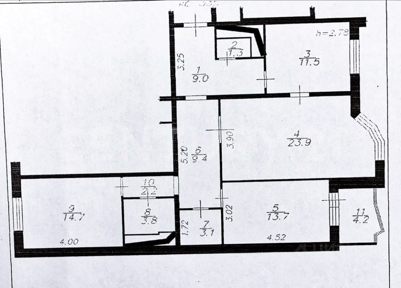 Простор для жизни: 3 большие комнаты (23,9 м², 14,7 м², 13,7 м²) и кухня 11,5 м² дают всем домочадцам личное пространство.