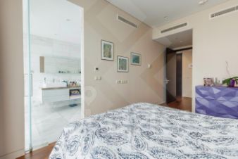 Планировкой пространство выглядит следующим образом: угловая гостиная совмещенная с кухней, мастер-спальня с панорамной ванной комнатой, холл, гостевой с/у, постирочная. Апартамент наполнен премиальной отделкой и мебелью: кухня RIFRA Италия, сантехника FANTINI Италия, бытовая техника KUPPERSBUSCH Германия, окна SCHUCO. Высота потолков 3м. Приточно-вытяжная система вентиляции и центральное кондиционирование для комфорта проживания.