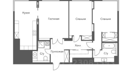 Планировка: кухня, гостиная, две спальни, два с/у.