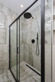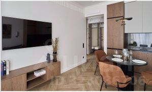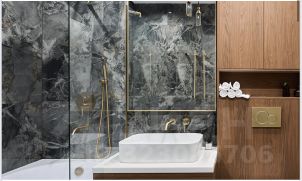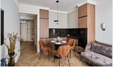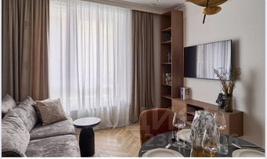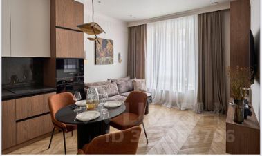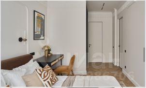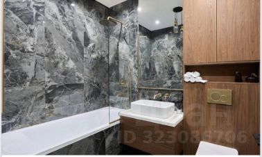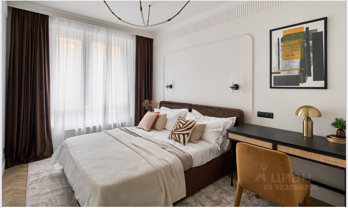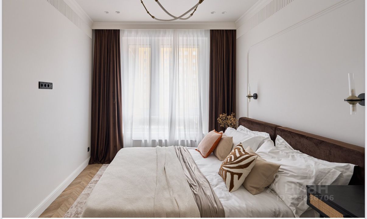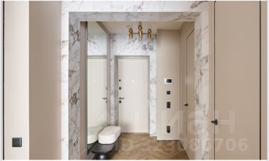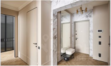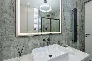 В квартире выполнен ремонт бизнес-класса в стиле современной классики, интерьеры оформлены с использованием фактуры мрамора и дерева, полностью укомплектована мебелью на заказ и премиальной бытовой техникой. Функциональная планировка включает кухню-гостиную с обеденной зоной, мастер спальню с собственной ванной комнатой и гардеробной, вторую спальню, санузел с душевой кабиной, построчную и прихожую с гардеробной.