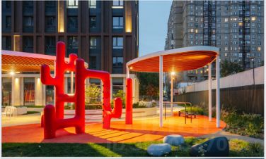 ЖК бизнес класса, в подземной части комплекса находится паркинг. На придомовой территории: большая современная детская площадка и комплексное озеленение. Различные уровни системы безопасности: контроль доступа в здание с помощью электронных карт в подземный паркинг, на придомовую территорию, а также система связи жителей дома с охраной и гостями по видеодомофону. Консьерж.