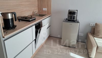 Полная комплектация: Студия полностью меблирована и оборудована. Вас ждет стильная кухонная зона с новым кухонным гарнитуром и встроенной техникой.