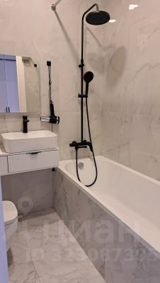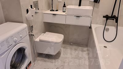Комфортная ванная комната: Просторная ванная комната оснащена полноценной ванной (что является преимуществом для студий) и современной стиральной машиной.