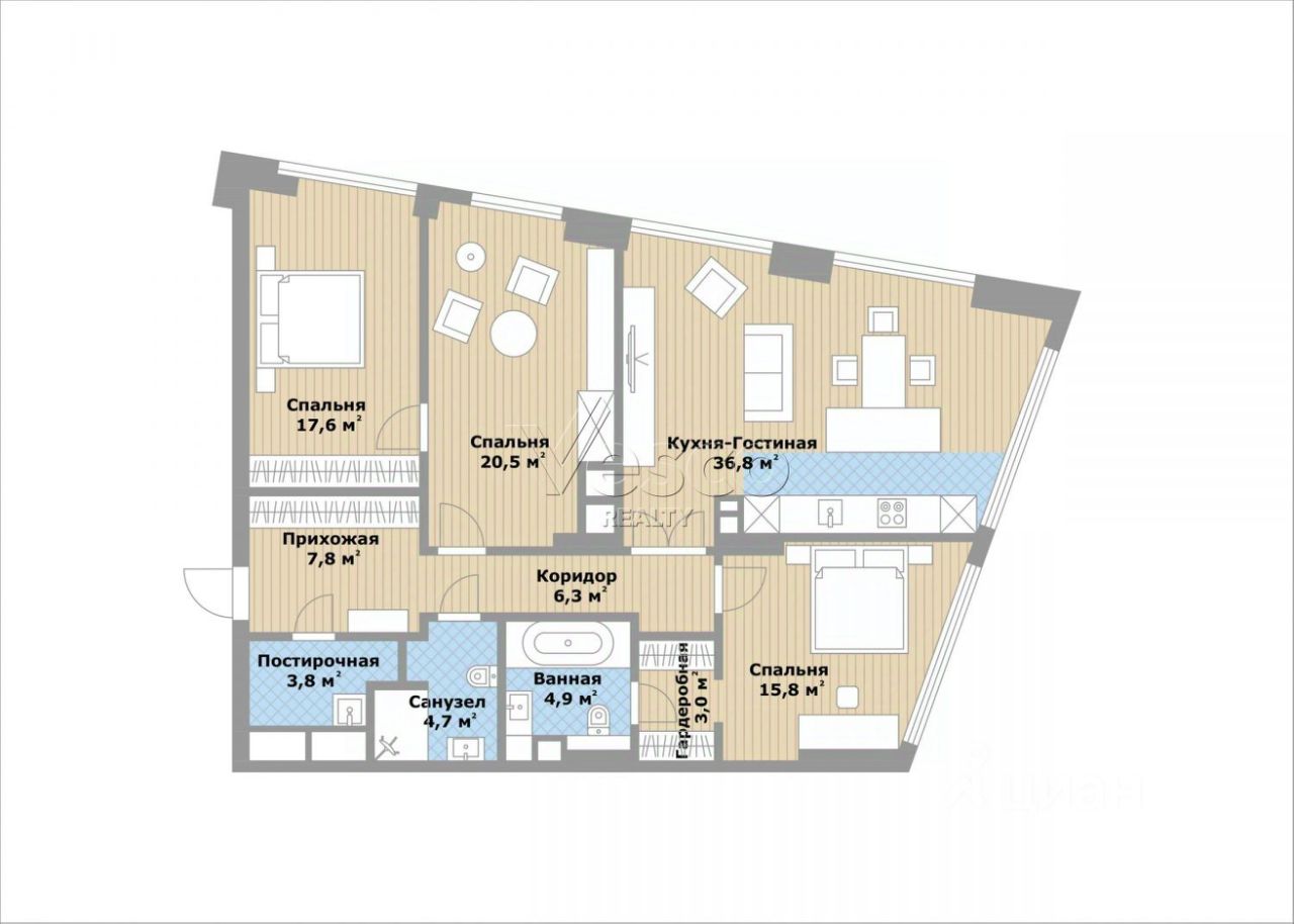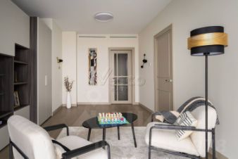 В квартире: просторная кухня-гостиная, мастер-спальня с гардеробной и ванной комнатой, вторая спальня со смежной большой комнатой свободного назначения, дополнительный с/у с душевой, постирочная, просторная прихожая.