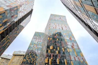 Четыре зеркальные башни высотой 22-29 этажей величественно возвышаются над городом. Современный дизайн фасада в стиле hi-tech делает SKY HOUSE настоящим украшением всего района. Замысловатая конструкция смотрится очень величественно, а панорамные окна придают строению яркие очертания.