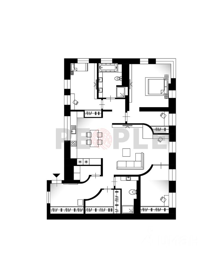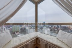 Квартира оснащена дизайнерской мебелью и предметами в интерьере.
