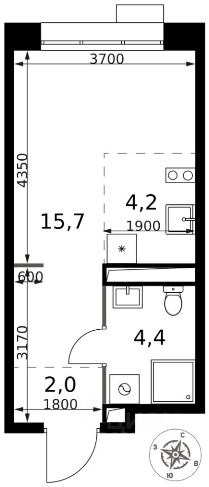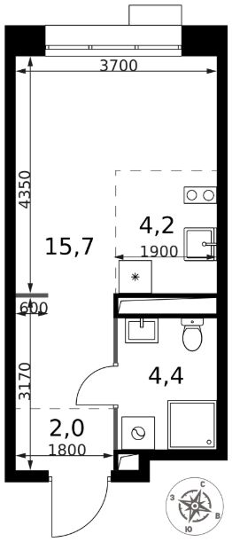 Продаётся 1-к квартира номер 179 общей площадью 26.3 кв.м. на 19-м этаже 21 этажного дома. Без отделки.