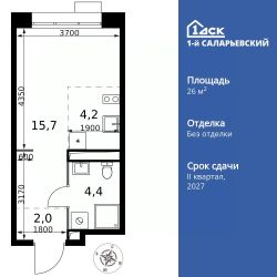 Продаётся 1-к квартира номер 179 общей площадью 26.3 кв.м. на 19-м этаже 21 этажного дома. Без отделки.