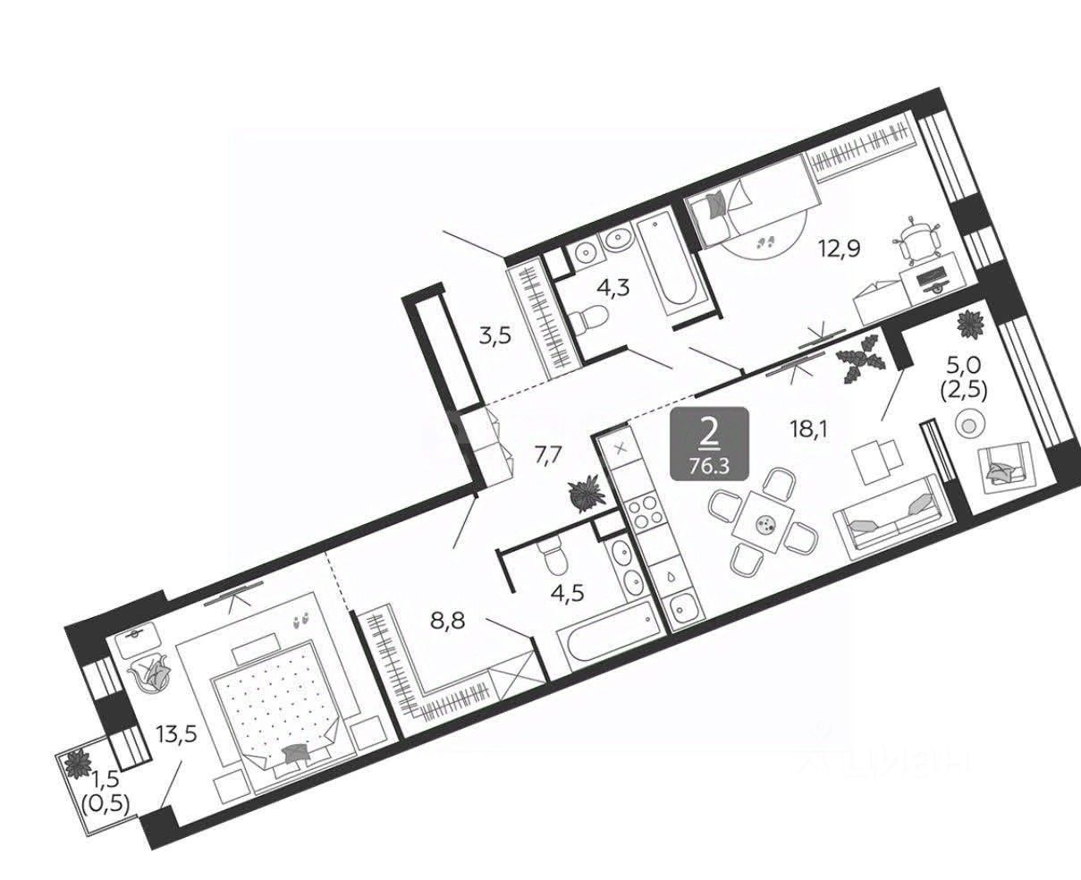 Просторную планировку: две изолированные спальни обеспечат вам уединение и покой. Просторная кухня-гостиная станет идеальным местом для семейных ужинов и встреч с друзьями. Гардеробная и лоджия добавляют функциональности и стиля. Панорамные окна дают ощущение пространства.