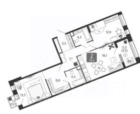Продаётся евро-трёшка 78,3 кв. м. с двумя санузлами в уникальном ЖК "Шагал" (корпус 8)!