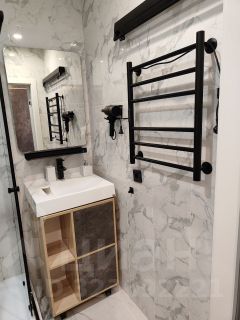 Сделан стильный ремонт и установлена сантехника, полностью меблирован.