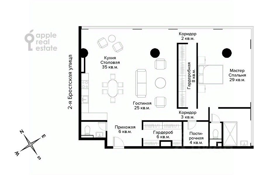 Новая стильная 2-х комнатная квартира в современном ЖК "Четыре ветра", расположена на 3 этаже. Общая площадь: 133.4 кв.м. Потолки 3.5 м. Панорамный вид из окон. Функциональная планировка: просторная кухня-гостиная, мастер-блок: спальня, гардеробная, постирочная, раздельный с/у; гардеробная, гостевой с/у, балкон.