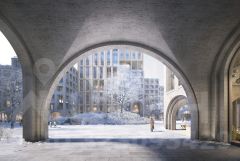 Подземный паркинг полностью освобождает двор от автомобилей, формируя комфортное пешеходное пространство.