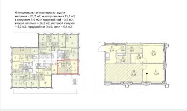 - мастер-спальня 15,1 кв.м с санузлом 5,6 кв.м и гардеробной 3,9 кв.м
