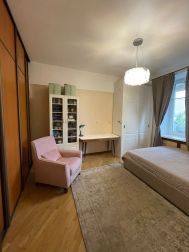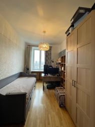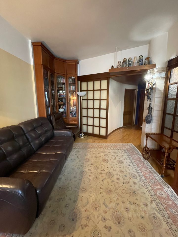 Общая площадь 105 кв.м.,/48 кв.м. 3 изолированные комнаты 21-15-12/гостиная 21 кв.м./ кухня 9 кв.м., удобная планировка: кухня-гостиная со встроенной кухней и зоной отдыха, могут быть изолированы друг от друга раздвижными дверями, все спальные комнаты выходят окнами во двор, застекленная и теплая лоджия, ванная комната и с/у раздельные. Хороший ремонт, натуральный дубовый современный паркет. Кухня полностью оснащена техникой встроенный холодильник, посудомоечная машинка, газовая варочная панель и духовой шкаф. Квартира продается со встроенной кухней, бытовой техникой, спальным гарнитуром, диваном и встроенными элементами квартиры. Ванная комната с подогревом полов, кондиционер. В доме во дворе парковка для автомобилей, территория благоустроена.