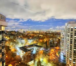 • С балкона открывается живописный панорамный вид на внутренний двор, город и зелёный парк.